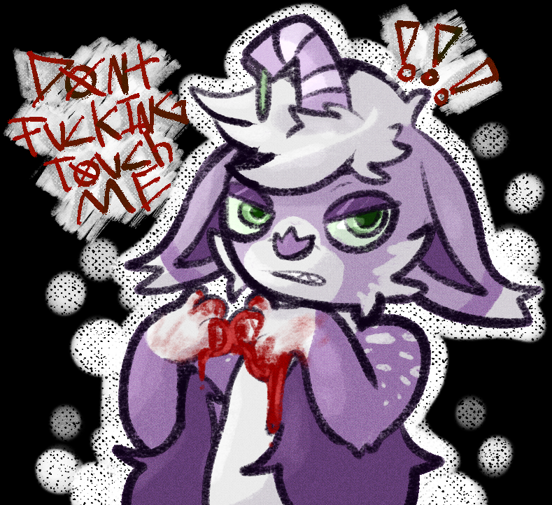 A smug lil gremlin bastard, but at work she acts like some weird soft girl. Kind of cringe. Will act extra quirky if her friends or frequent customers show up at work though. Her drink shop is attached to her house so she lives where she works. She also loves void hybrids and will be extra nice to them due to not liking the mistreatment of their kind. Isn't really concerned about the dangers. She makes all the drinks at her shop herself- From different fruits, flowers, and sometimes the liquid created in her tail as an add in...Or just straight up. Is oddly popular of a drink when people get past how weird that is.